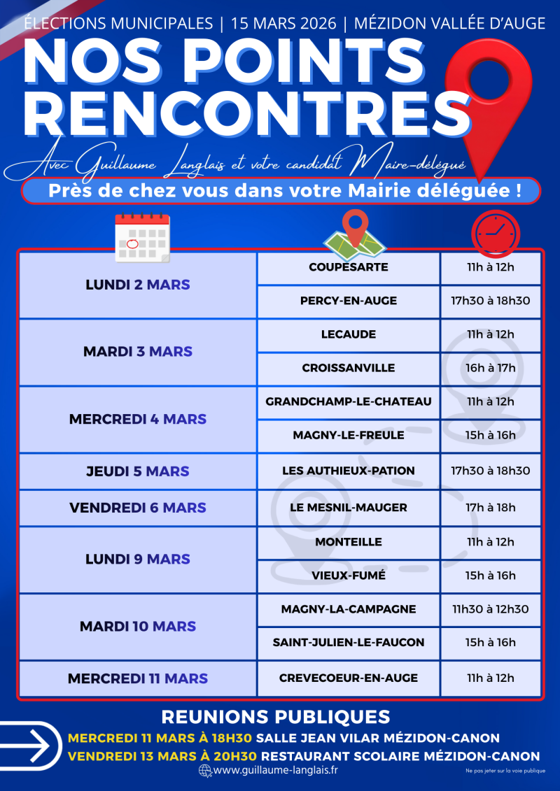 Les élections municipales de Mézidon Vallée d’Auge se tiendront le 15 mars. C’est l’occasion de jouer un rôle actif dans la vie de votre commune et de contribuer aux décisions qui façonnent notre avenir collectif.